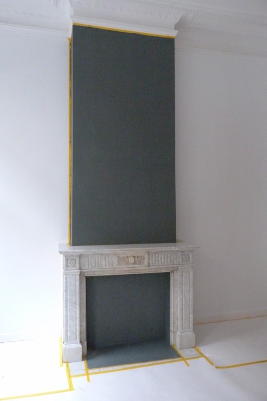Let's move on to the middle room, shall we ? It's about the same size as the front room and has the same original oak flooring. The original mantle also still lives here. Although in this instance I can’t say I’m too overjoyed with that, as - how would I put it politely - this fireplace tends somewhat towards the Victorian gothic (horror) style... (Nothing a good old black wall can’t fix though). Besides the lack of light, this room also presents another difficulty, as the entrance door to the apartment goes straight into this room. No hall. Not even a vestibule. You open the door and tada - you’re right in the living room…