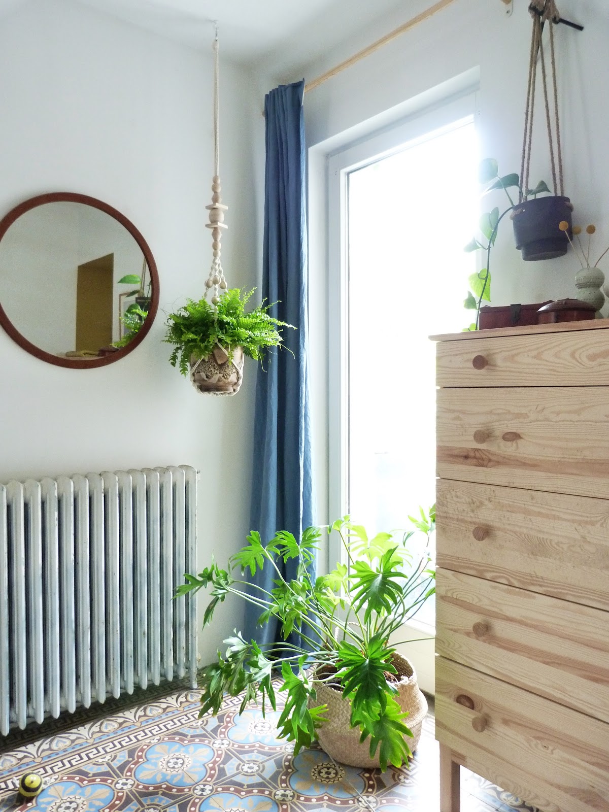 Do you know what else is funny? The dresser isn't the only thing from Ikea here... The philodendron came from there, so does the curtain and the curtain rod (can't find it on their site anymore. Already discontinued?). And the macramé of course. Oh and the FLADIS basket... For a self-professed vintage queen I'm turning into quite the Ikea groupie...